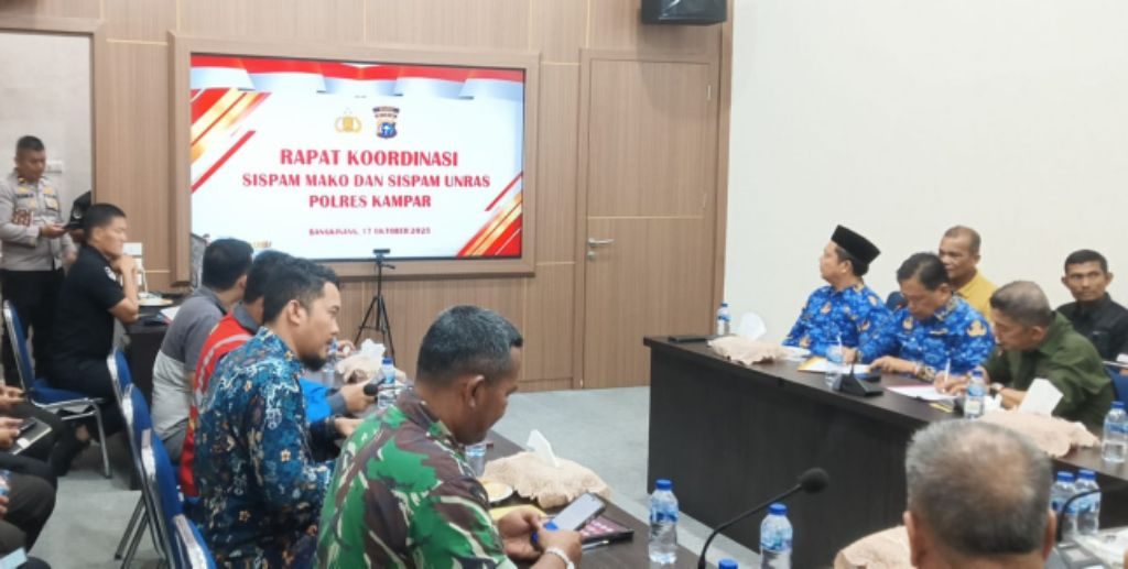 KAMPAR – Allnewsterkini. Com| Menjelang musim hujan tahun 2025, Polres Kampar menggelar Rapat Koordinasi Kesiapsiagaan Menghadapi Potensi Bencana Banjir di wilayah Kabupaten Kampar, Jumat (17/10/2025).
