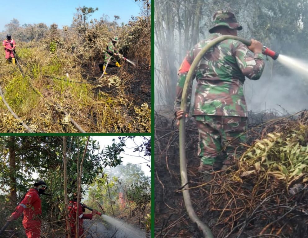 Tambang, – Allnewsterkini. Com | Anggota Koramil 07/Kampar jajaran Kodim 0313/KPR Serma Ayu Wisafrizal dan Serda Jemmi bersama Manggala Agni, dan BPBD terus melaksanakan tugasnya dalam memadamkan api serta pendinginan lahan.Sabtu (01/11/2025).