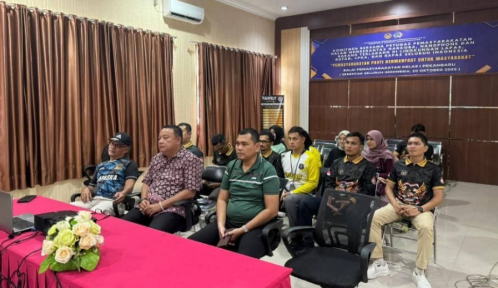 Pekanbaru – Allnewsterkini.Com|Kepala Bapas Kelas I Pekanbaru beserta jajaran turut serta dalam kegiatan Zoom Meeting Kick Off Peringatan Hari Bakti Kementerian Imigrasi dan Pemasyarakatan (Kemenimipas) serta Peresmian Logo Peringatan Hari Bakti Kemenimipas Tahun 2025, pada Jumat (07/11).