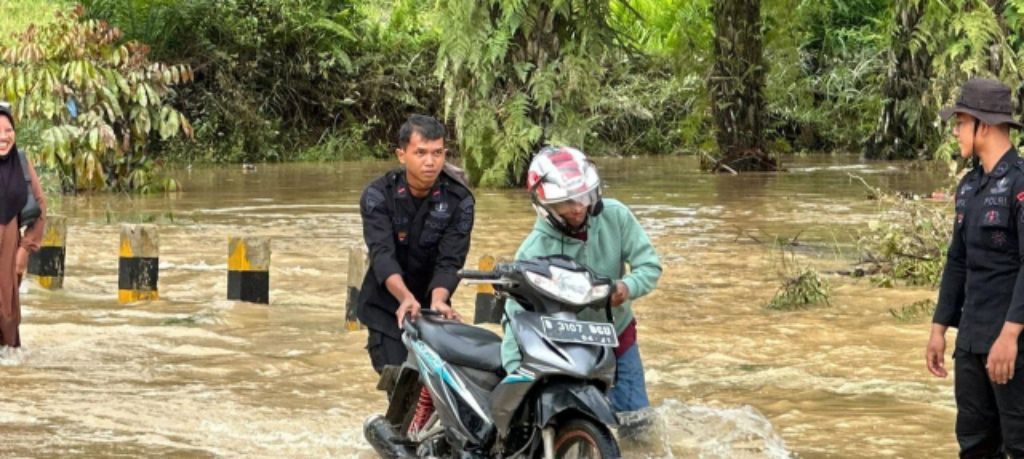 Setibanya di lokasi, personel Brimob bersama tim gabungan dari Polsek Batang Gangsal langsung melaksanakan patroli serta pengaturan arus lalu lintas di sepanjang jalur yang tergenang air. Langkah ini dilakukan guna mencegah terjadinya kecelakaan lalu lintas, memastikan keselamatan pengguna jalan, serta menjaga kelancaran mobilitas masyarakat yang melintasi jalur vital tersebut.