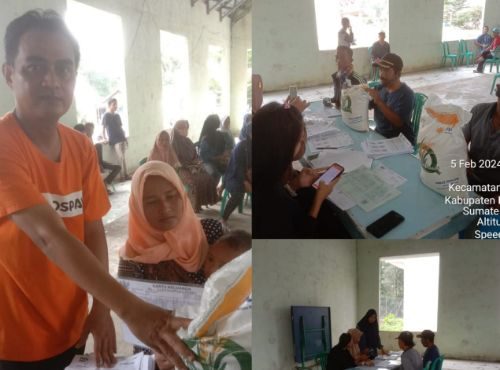 Allnewsterkini. Com | Banyuasin Air Salek – Bertempat di balai desa, desa Sidoharjo, kecamatan air salek, kabupaten Banyuasin, Bulog melalui PT. Pos Indonesia bagikan bantuan pangan beras sebanyak 10 Kilogram kepada Keluarga Penerima Manfaat (KPM) di Wilayah Kecamatan air salek, Senin( 05/02/24)