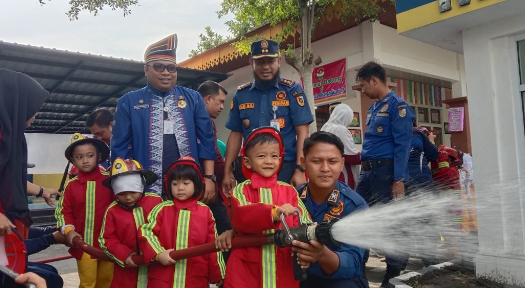 Pekanbaru – Allnewsterkini. Com|Dinas Pemadam Kebakaran dan Penyelamatan (DPKP) Kota Pekanbaru secara rutin dan estafet, terus menggelar kegiatan sosialisasi dan pelatihan pencegahan dan penanggulangan kebakaran di sekolah sekolah, tempat tinggal dan lingkungan dan keramaian. Seperti pada hari ini, digelar di Taman Kanak-kanak (TK) Kemala Bhayangkari 03 Kota Pekanbaru Jalan Sisingamangaraja, Kamis (25/9/2025).