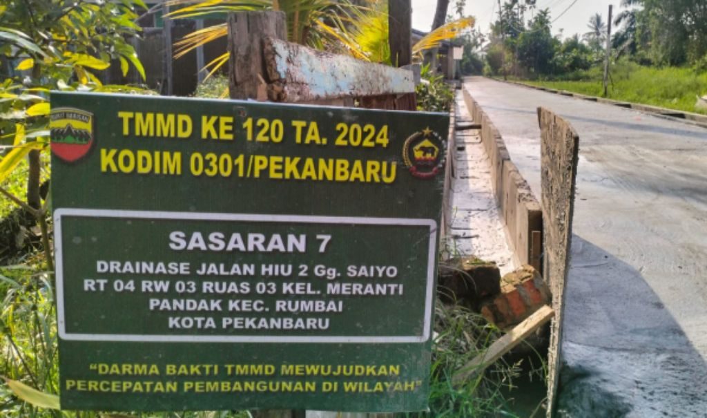 Allnewsterkini. Com | Pekanbaru — Progres sasaran fisik drainase ruas 03 dan ruas 03A Jalan Hiu 2 gang Saiyo RT 04 RW 03 Kelurahan Meranti Pandak Kecamatan Rumbai Kota Pekanbaru sudah 100 persen rampung dikerjakan satgas dan warga, Sabtu (01/06/2024).
