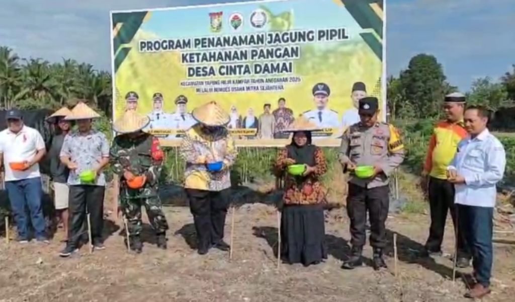 Tapung Hilir – Allnewsterkini. Com| Kepolisian Sektor (Polsek) Tapung Hilir turut mendukung Program Ketahanan Pangan Nasional dengan berpartisipasi dalam kegiatan penanaman jagung pipil di Desa Cinta Damai, Kecamatan Tapung Hilir, Kabupaten Kampar, pada Kamis (2/10/2025) pagi.