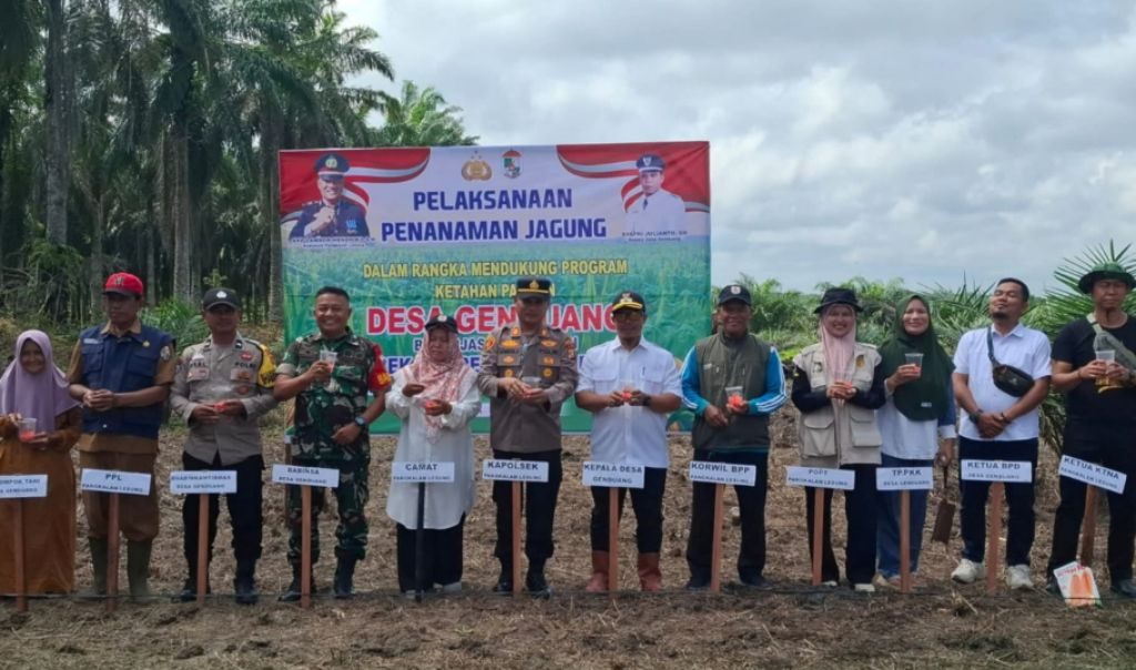 Pangkalan Lesung — Allnewsterkini. Com| Dalam rangka mendukung program Ketahanan Pangan (Hanpangan) di wilayah binaan, Babinsa Koramil 04/Pangkalan Kuras Kodim 0313/KPR, Sertu Edi Subroto, menghadiri kegiatan penanaman perdana jagung yang dilaksanakan di lahan kelompok tani Desa Genduang Kec.Pangkalan Lesung Kab.Pelalawan, Rabu (15/10/2025).