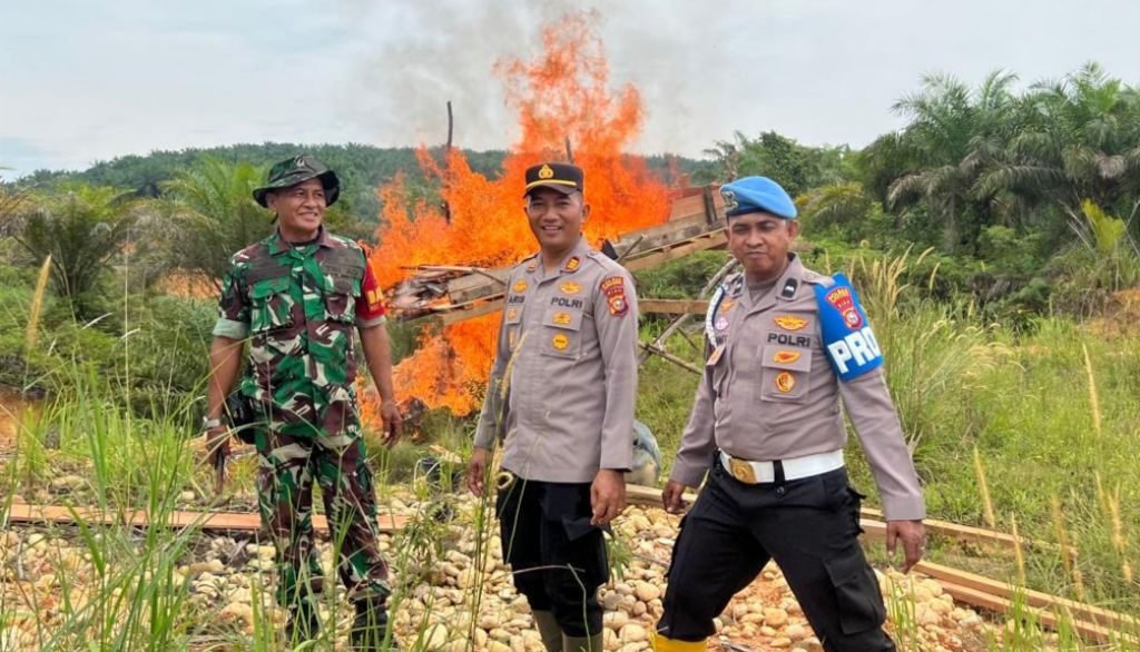 Setelah melakukan pengecekan di beberapa titik lokasi yang berbeda, Saya beserta personil melakukan pemusnahan dengan cara membakar seluruh peralatan yang di duga untuk aktivitas peti tersebut.” Ungkap Kapolsek Hulu Kuantan dengan Tegas
