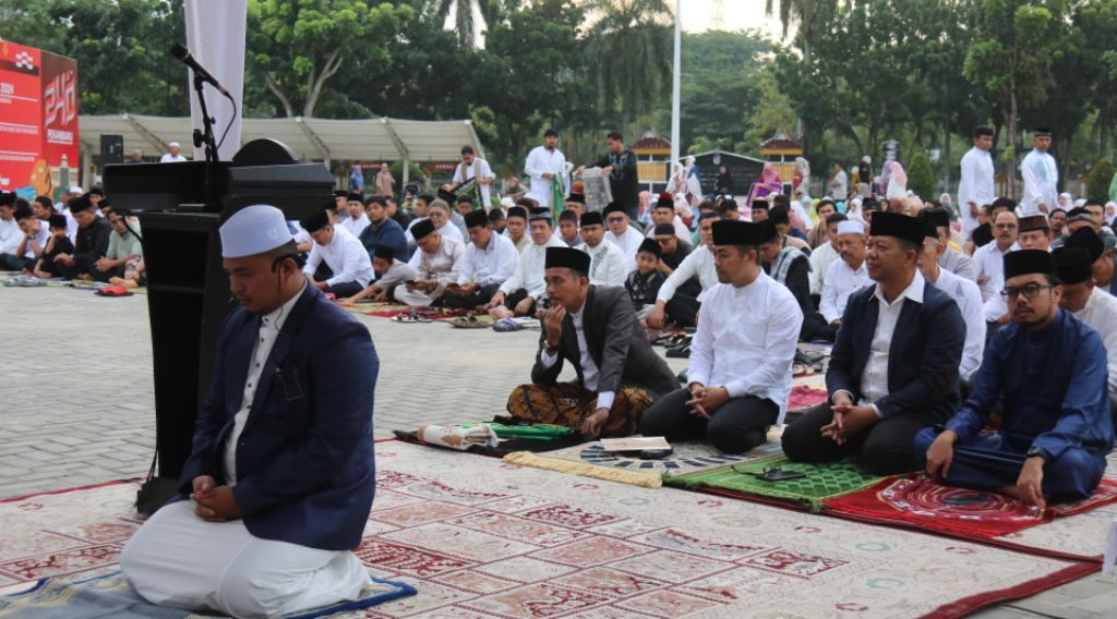 Allnewsterkini. Com | Pekanbaru — Dandim 0301 PBR Kolonel Inf Sri Marantika Beruh SSos, MIPol yang diwakili Kasdim 0301 PBR Letkol Arh Muliyadi SIP melaksanakan Sholat Idul Adha 1445 Hijriyah bersama Pj Walikota Pekanbaru Risnandar Mahiwa SSTP, Msi beserta unsur Forkompinda, di halaman Kantor MPP Jalan Jend Sudirman Kota Pekanbaru, Senin (17/06/2024)