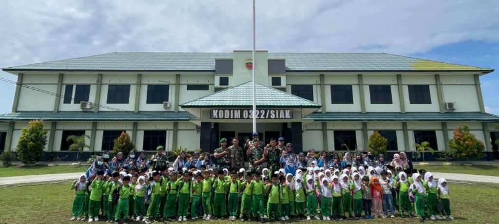 Allnewsterkini. Com | Siak – Suasana penuh keceriaan terpancar di Makodim 0322/Siak ketika ratusan anak-anak TK dari Yayasan RA Al-Zaitun Kecamatan Bunga Raya berkunjung dalam kegiatan Wisata Edukasi. Kegiatan ini berlangsung pada Kamis, 12 September 2024, pukul 10:30 WIB, di Makodim 0322/Siak, Jalan Siak Tumang, Kelurahan Kampung Rempak, Kecamatan Siak, Kabupaten Siak.(12/09/2024)