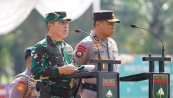 KUANTAN SINGINGI — Allnewsterkini. Com | Panglima Komando Daerah Militer (Pangdam) XIX/Tuanku Tambusai Mayjen TNI Dr. Agus Hadi Waluyo, S.A.P., M.M., CHRMP., bersama Kapolda Riau Irjen Pol. Dr. Herry Heryawan, S.I.K., M.H., M.Hum., secara resmi menutup kegiatan TNI Manunggal Membangun Desa (TMMD) Ke-127 Tahun Anggaran 2026 Kodim 0302/Inhu dalam upacara yang digelar di Lapangan Sepak Bola Desa Tanjung, Kecamatan Kuantan Hilir Seberang, Kabupaten Kuantan Singingi, Rabu (11/3/2026).