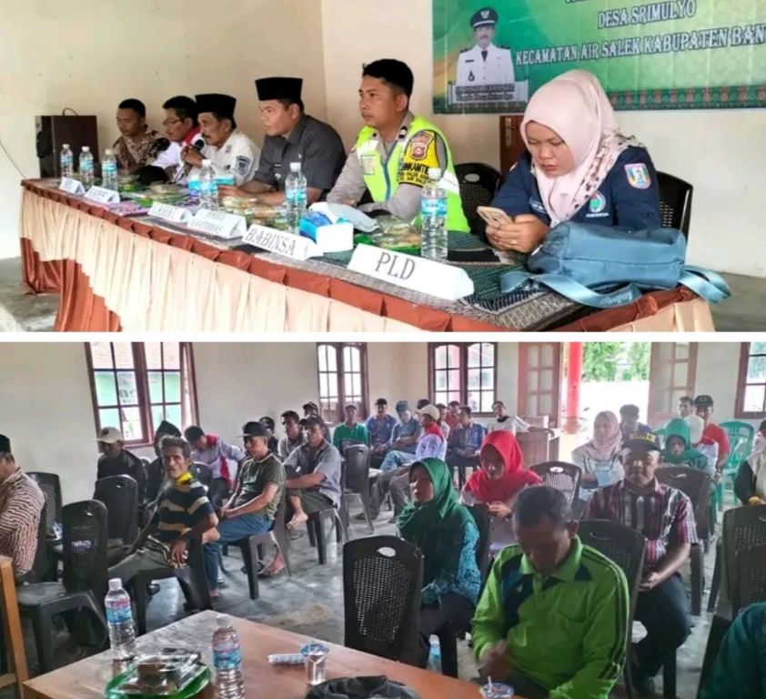 Dalam acara (musrenbangdes) Tahun Anggaran 2024. Yang di gelar di kantor desa Srimulyo, di hadiri Camat air salek, Mulyadi S, Sos, M, Si, Staf kecamatan, Kepala desa Srimulyo, Suyanto Eryanto, Ketua BPD, Perangkat desa, Bhabinkamtibmas, Babinsa, PLD, tokoh Agama, Tokoh Adat, Tokoh Masyarakat, dan pemuda karang taruna,