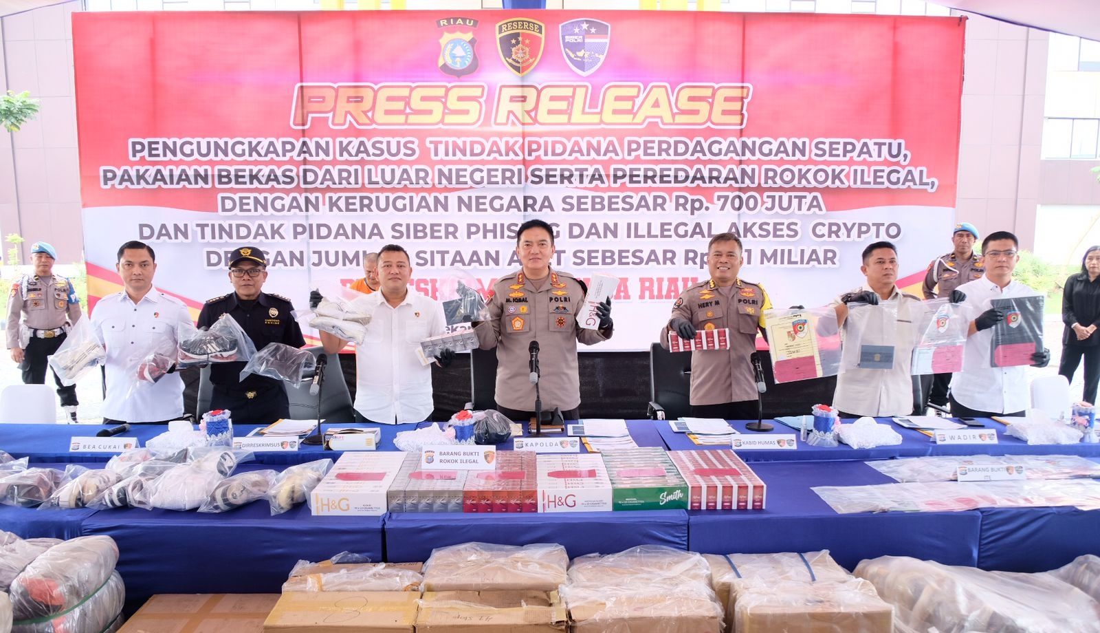 Polda Riau Ungkap Tindak Pidana Rokok Ilegal, Barang Bekas, dan Kejahatan Siber degan Kerugian Negara Miliyaran Rupiah