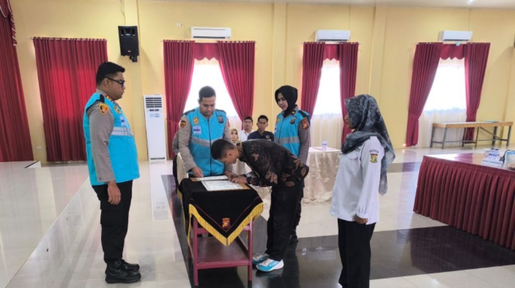 KAMPAR – Allnewsterkini.Com | Polres Kampar menggelar kegiatan Penandatanganan Pakta Integritas dan Pengambilan Sumpah perwakilan panitia, peserta seleksi, dan orang tua/wali Penerimaan Bintara Brimob Polri T.A. 2026. Kegiatan ini dilaksanakan di Aula Sanika Satyawada Polres Kampar, Rabu (19/11/2025), dan dipimpin langsung oleh Karo SDM Polda Riau KOMBESPOL Anissullah M. Ridha.