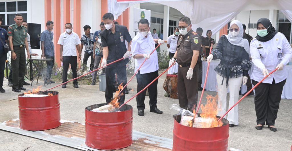 Sementara itu, Bupati Rokan Hilir, H Bistamam, menyampaikan bahwa pemusnahan barang bukti bukan sekadar kegiatan seremonial, tetapi bentuk komitmen pemerintah daerah dalam menjaga ketertiban dan keamanan. Ia menegaskan bahwa barang bukti yang dimusnahkan merupakan hasil perkara yang telah diputus pengadilan dan pemusnahan menjadi bagian penting dari transparansi proses hukum. Ia menyatakan bahwa Rokan Hilir menolak segala bentuk kejahatan, baik narkoba, pencurian, kekerasan, maupun tindak pidana lainnya.