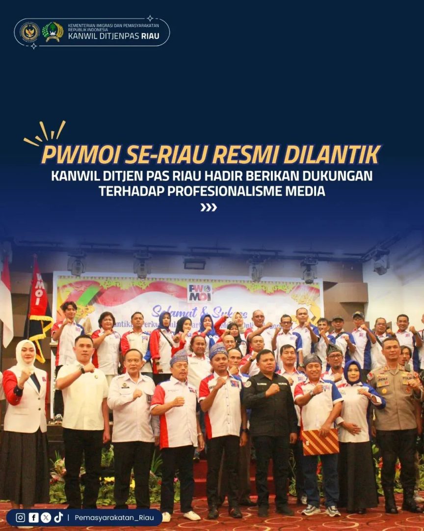 Pekanbaru – Allnewsterkini. Com|Kantor Wilayah Direktorat Jenderal Pemasyarakatan Riau turut hadir dalam kegiatan Pelantikan Perkumpulan Wartawan Media Online Indonesia (PWMOI) Se-Riau Periode 2025–2028 yang berlangsung pada Kamis, (11/12) di Alpha Hotel Pekanbaru.