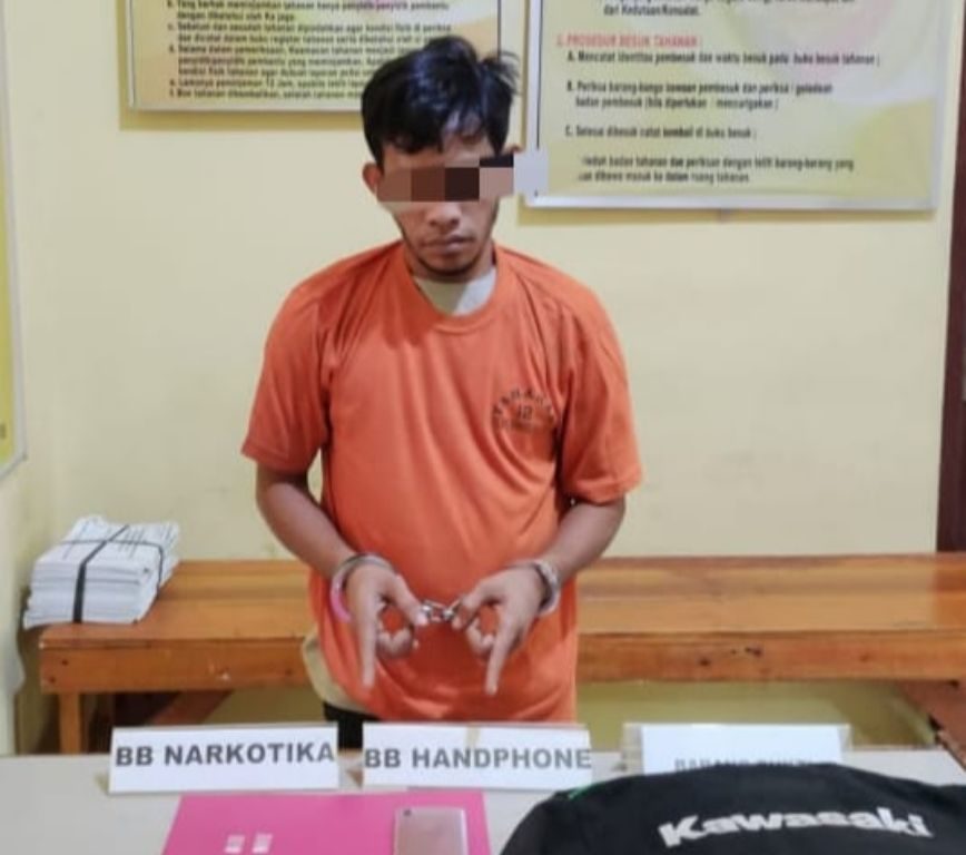 “Pelaku langsung mengamankan pelaku dan dilakukan penggeledahan Rumah dan barang milik pelaku dan ditemukan 2 paket narkotika jenis shabu,”kata IPTU Ferry.
