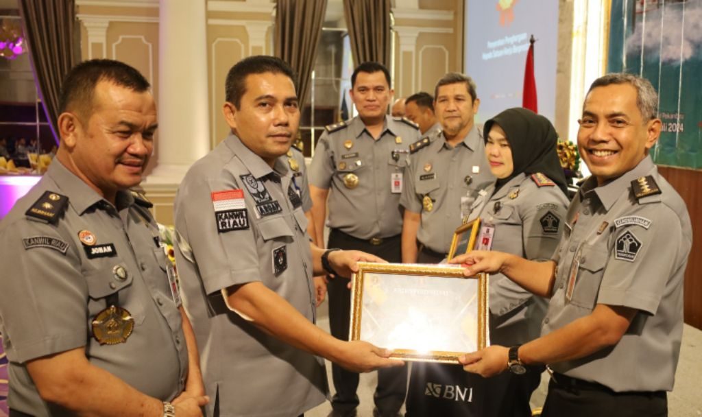Penghargaan ini diserahkan langsung oleh Kepala Kantor Wilayah Kemenkumham Riau, Budi Argap Situngkir kepada Plt. Kepala Rutan Kelas I Pekanbaru, Subakdo Wulandoro.