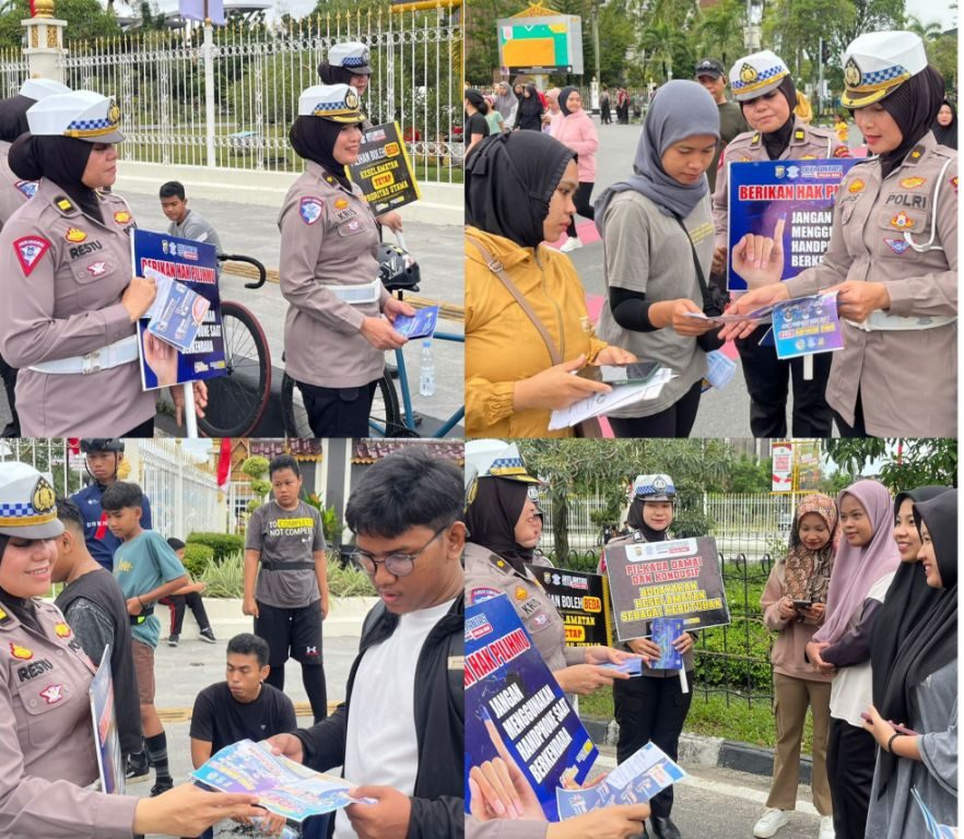 “Kegiatan Sosialisasi dan edukasi Kamseltibcarlantas serta himbauan Pilkada Damai ini sedang kita galakkan sebagai usaha untuk menekan angka kecelakaan Lalu Lintas , kita Dari Ditlantas Polda Riau rutin melaksanakan sosialisasi di tempat-tempat keramaian antara lain di area CFD Pekanbaru ini mas, karena area CFD ini merupakan salah satu tempat tujuan masyarakat yang ingin berolahraga, bersantai maupun masyarakat yang suka mencicipi kuliner dadakan yang banyak dijual di area ini, kita dengan tim menyampaikan himbauan tata tertib berlalu lintas guna meningkatkan kesadaran masyarakat untuk selalu tertib dalam berlalu lintas, gunakan helm sesuai standar, tidak kebut kebutan dijalan, hindari pelanggaran, agar kita bisa mencegah terjadinya laka lantas sehingga angka fatalitas di jalan bisa ditekan,” jelasnya, Senin (07/10/24)