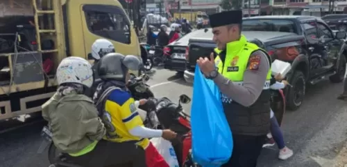 Sambut Nataru Aman, Polantas Menyapa Jumat Barokah Warnai Ops Lilin Lancang Kuning 2025 di Pekanbaru