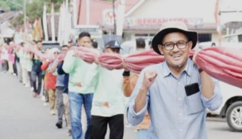 Kegiatan ini dipimpin langsung oleh Bupati Kuansing Dr. H. Suhardiman Amby, MM yang di wakili oleh Sekretaris Daerah Kabupaten Kuantan Singingi, Zulkarnain, ST, M.Si. Ribuan meter kain merah putih diangkat dan ditarik bersama-sama oleh seluruh Kepala Organisasi Perangkat Daerah (OPD) dan Camat berserta staf dengan berjalan kaki mengikuti rute yang telah ditentukan.