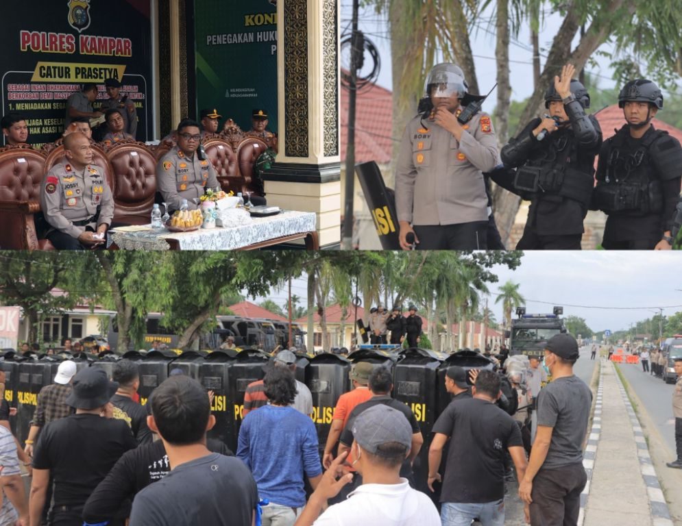 “Kegiatan simulasi ini bukan sekedar kegiatan rutin atau seremonial, akan tetapi merupakan bentuk kesiapsiagaan kami dan kemampuan Personel Polres Kampar dalam menghadapi berbagai potensi gangguan keamanan baik yang terjadi di Mako Polres Kampar maupun ditengah masyarakat dalam menyampaikan pendapat di muka umum,” ujar AKBP Boby Putra Ramadhan S dalam sambutannya.