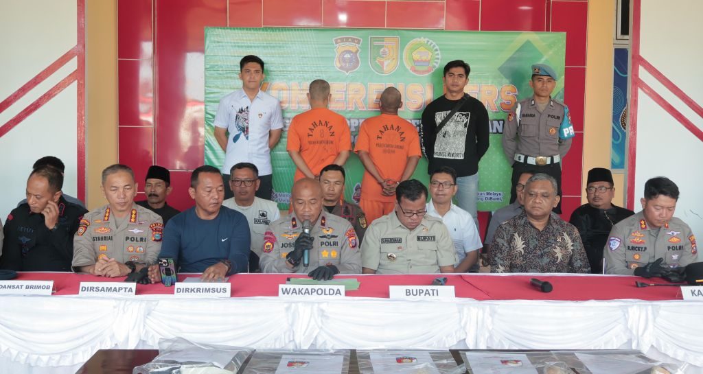 KUANTANSINGINGI,– Allnewsterkini. Com| Kepolisian Daerah Riau bersama Polres Kuantan Singingi menggelar Press Conference terkait hasil Operasi Penertiban Pertambangan Tanpa Izin (PETI) Kuantan 2025. Kegiatan yang dipimpin langsung oleh Wakapolda Riau, Brigjen Pol. A. Jossy Kusumo, S.H., M.Han tersebut berlangsung di Mapolres Kuansing, Sabtu pagi (2/8/2025).