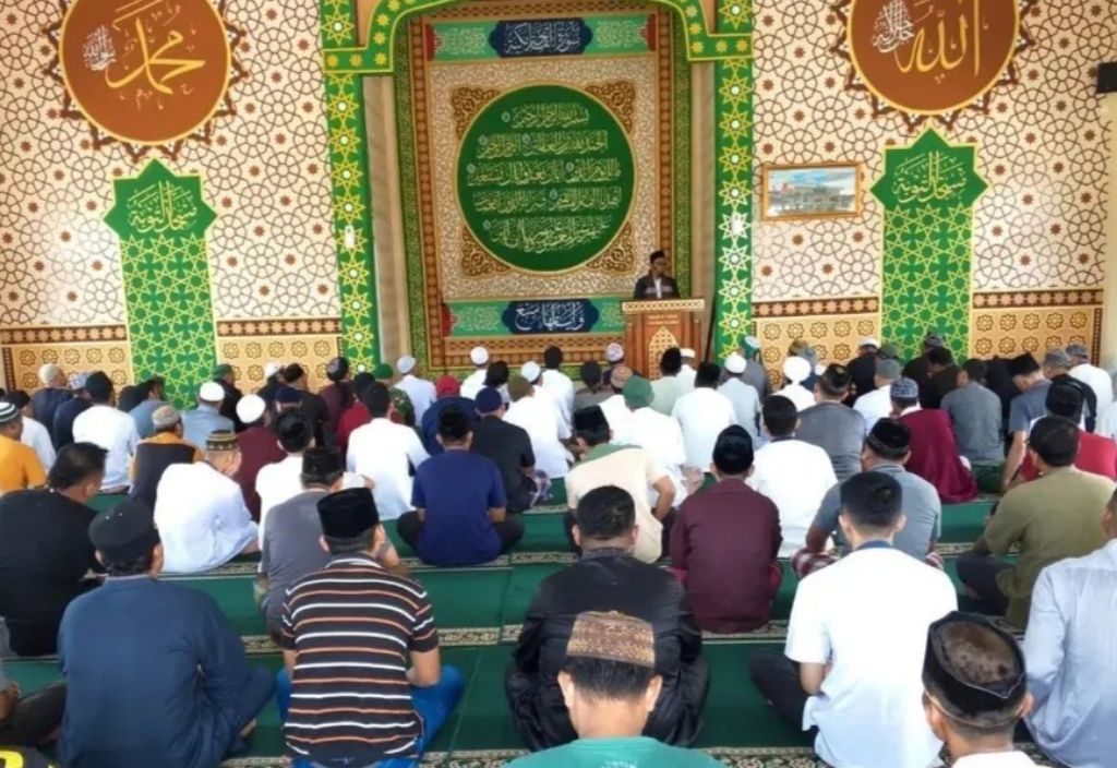 Rumbai – Allnewsterkini. Com | Warga Binaan Lembaga Pemasyarakatan Narkotika Kelas IIB Rumbai yang beragama Islam yaitu melakukan Sholat Jum’at berjamaah di Masjid At-taubah Lapas Narkotika Rumbai, Jum’at (3/10/2025).