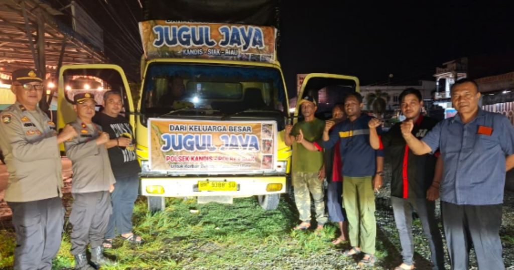 Siak – Allnewsterkini. Com | Kepedulian terhadap sesama kembali ditunjukkan oleh Polres Siak bersama keluarga besar CV. Jugul Jaya. Pada Senin malam, 15 Desember 2025, sekira pukul 21.30 WIB, bertempat di halaman Polsek Kandis, telah dilaksanakan kegiatan pelepasan bantuan kemanusiaan bagi korban bencana alam yang melanda wilayah Sumatera Utara, Sumatera Barat dan Aceh.